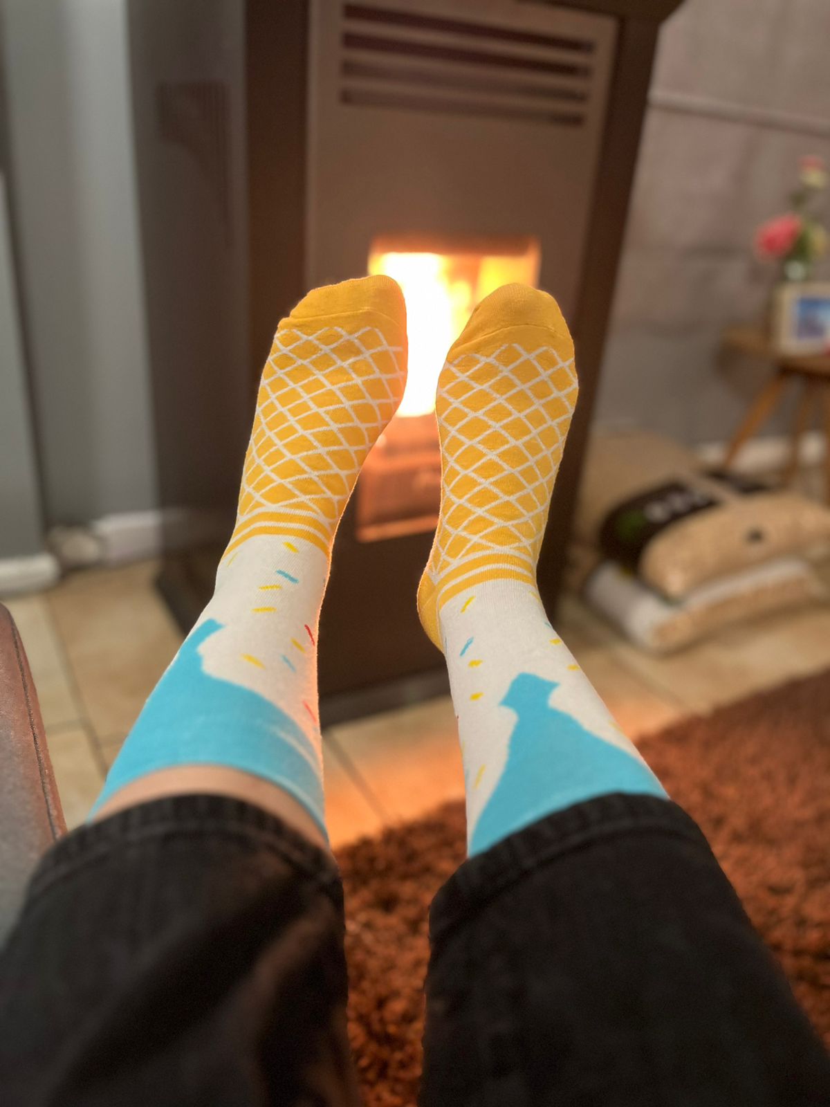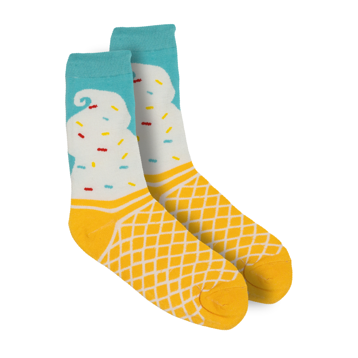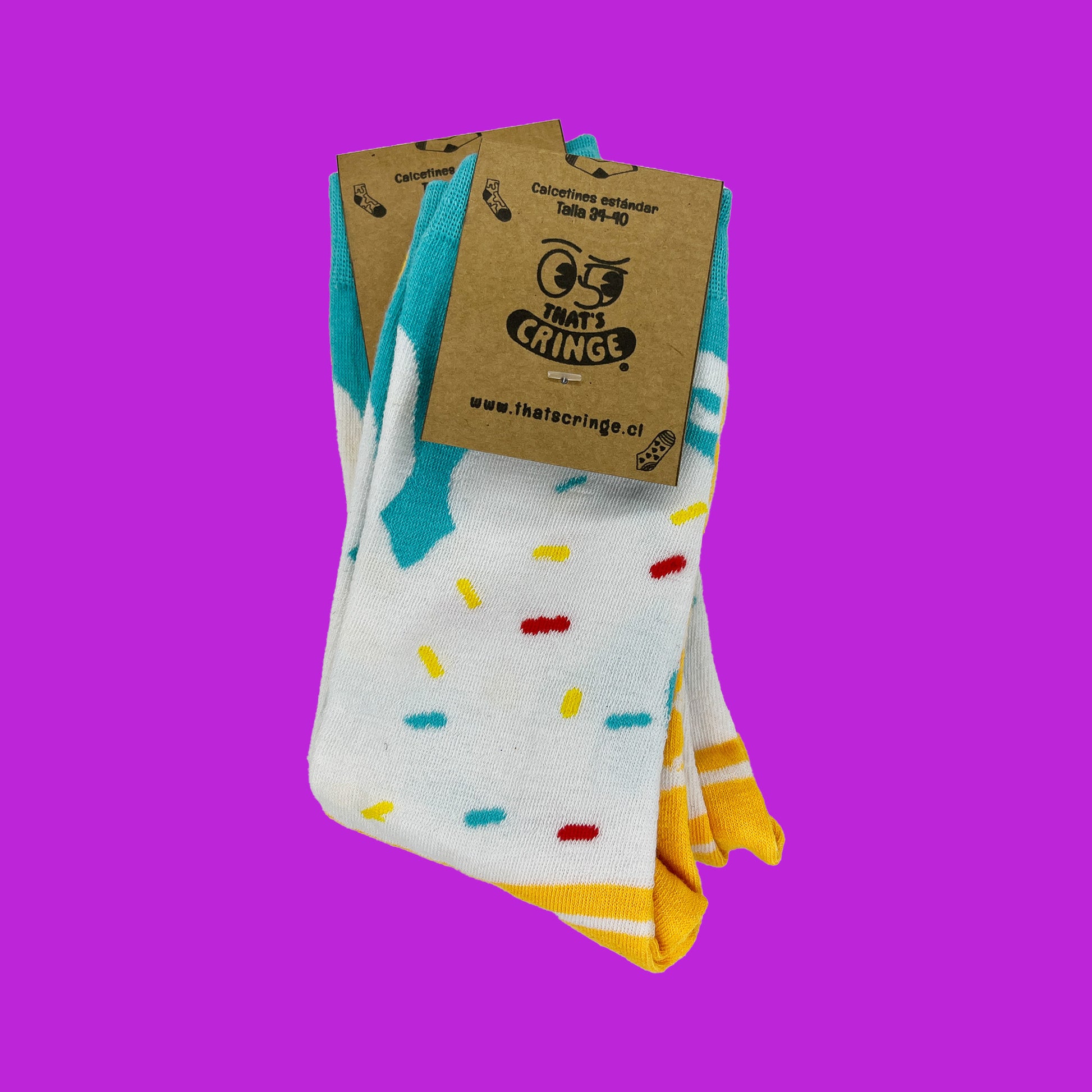 ¡Helado para tus pies! 🍦 Estos calcetines no se derriten, pero sí derriten miradas. Cono, crema y chispitas de colores en un diseño fresco y divertido que convierte cada paso en un paseo por la heladería.